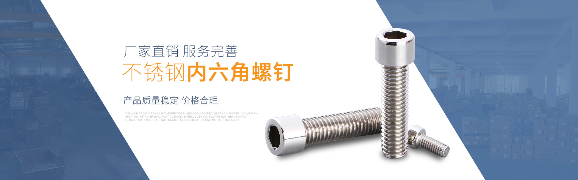 溫州博力浩實業有限公司創建于2006年,廠房面積30000m2,現有員工300多名,還引進各種國際先進螺母冷鍛機,螺絲冷鍛機及檢測設備,形成一條龍服務。產品質量穩定可靠,年產量近10000噸,產品供應國內各大企業廠家,深受好評。主要產品有不繡鋼內六角、外六角、緊定、開口銷、擋圈、平墊、彈墊、方母、六角螺母、法蘭螺母、防松螺母、雙頭螺絲、碟型螺母、蓋型螺母、牙條平鍵條、圓柱條、內齒、外齒......